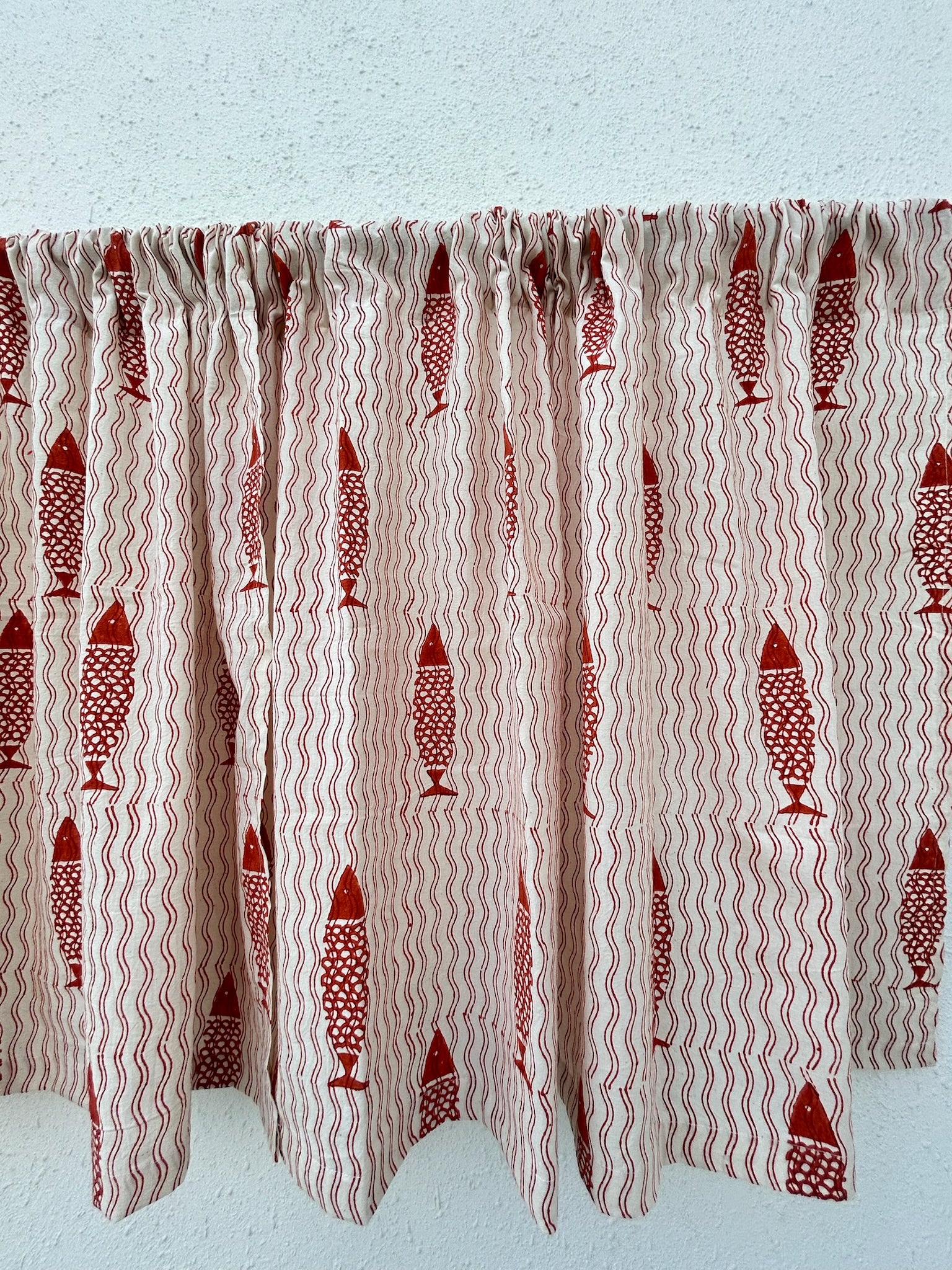 Fish Print Cafe Curtains in Rust