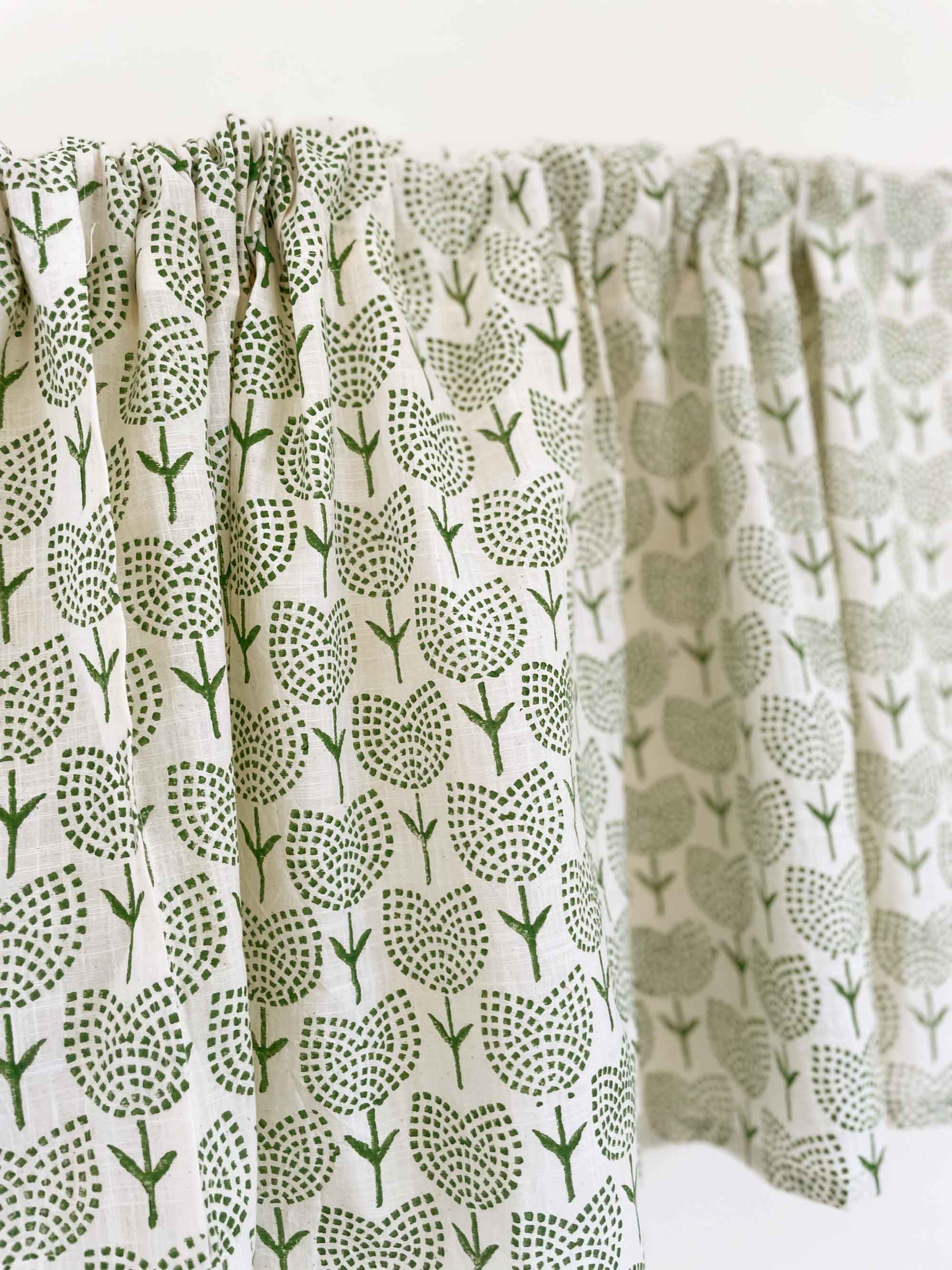 Green Tulips Floral Print Cafe Curtains in Various Length Options