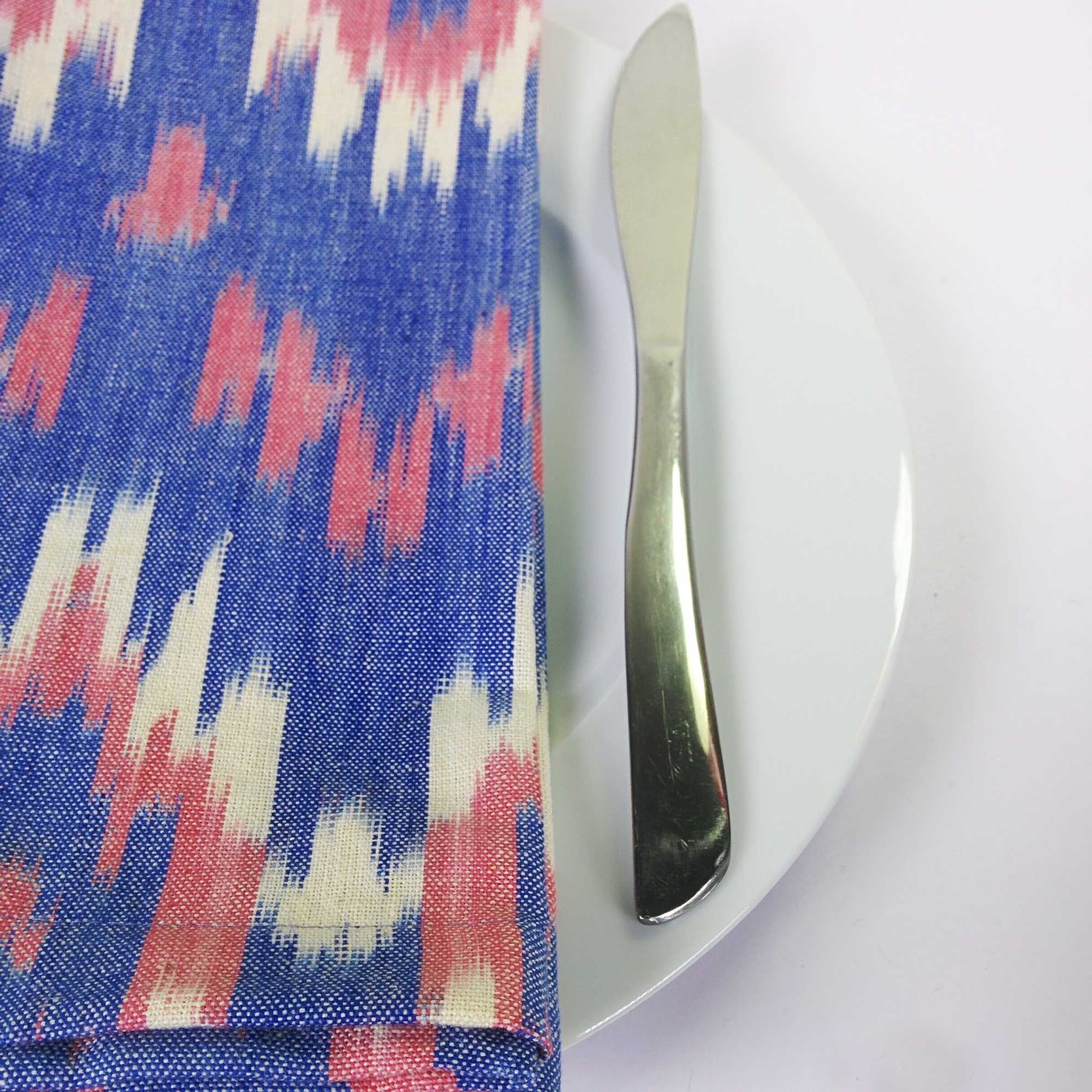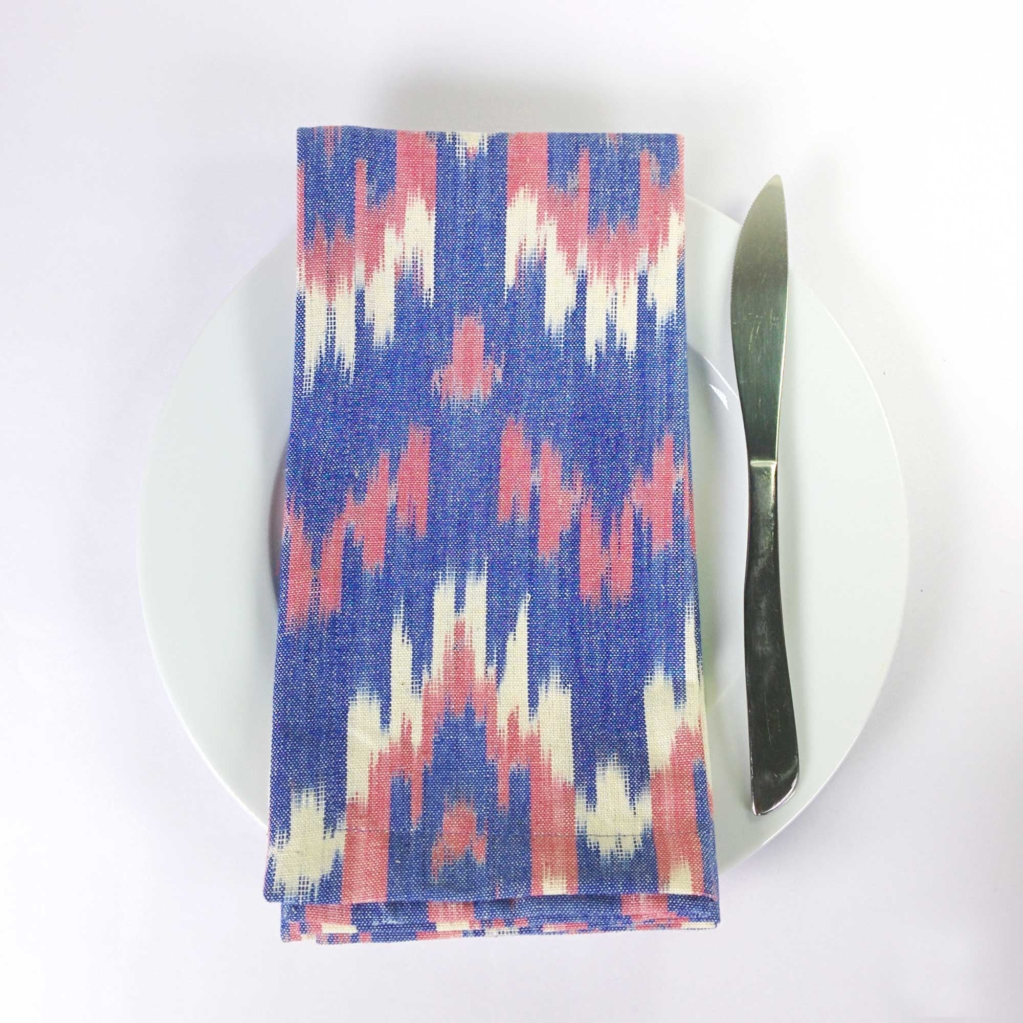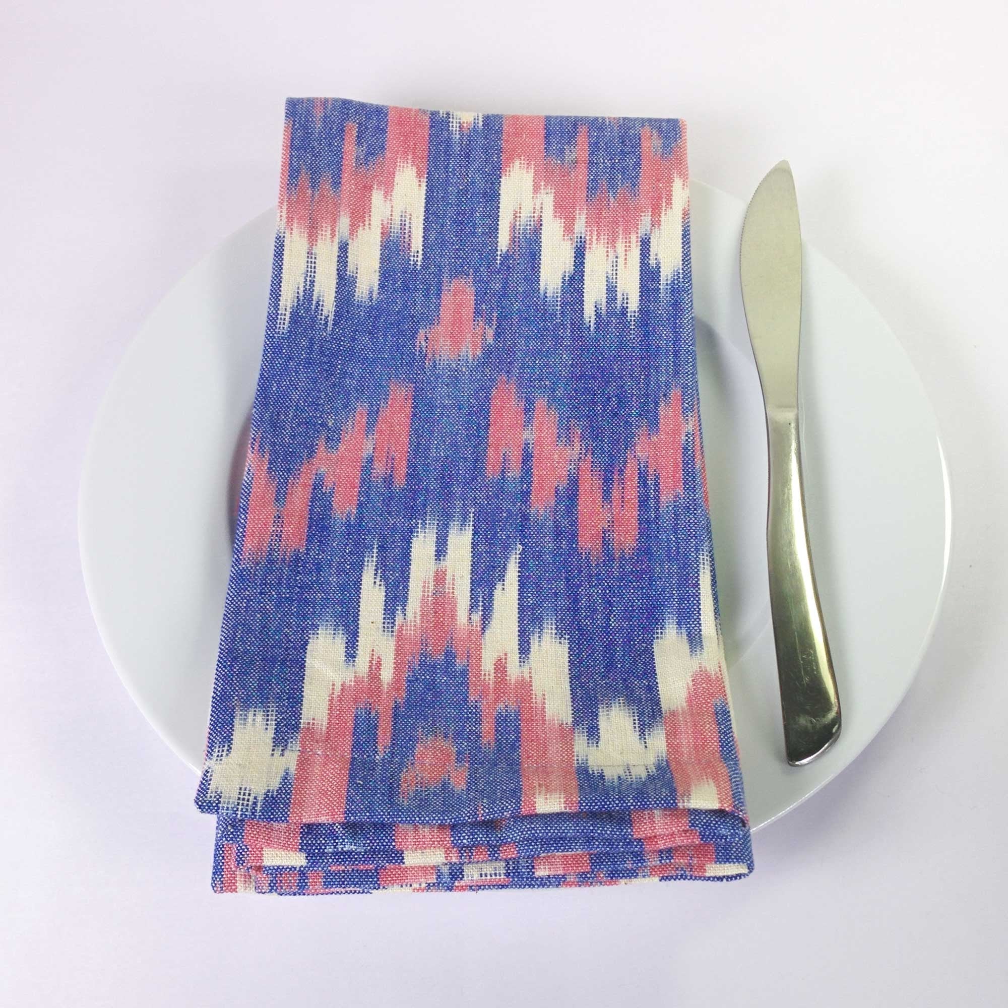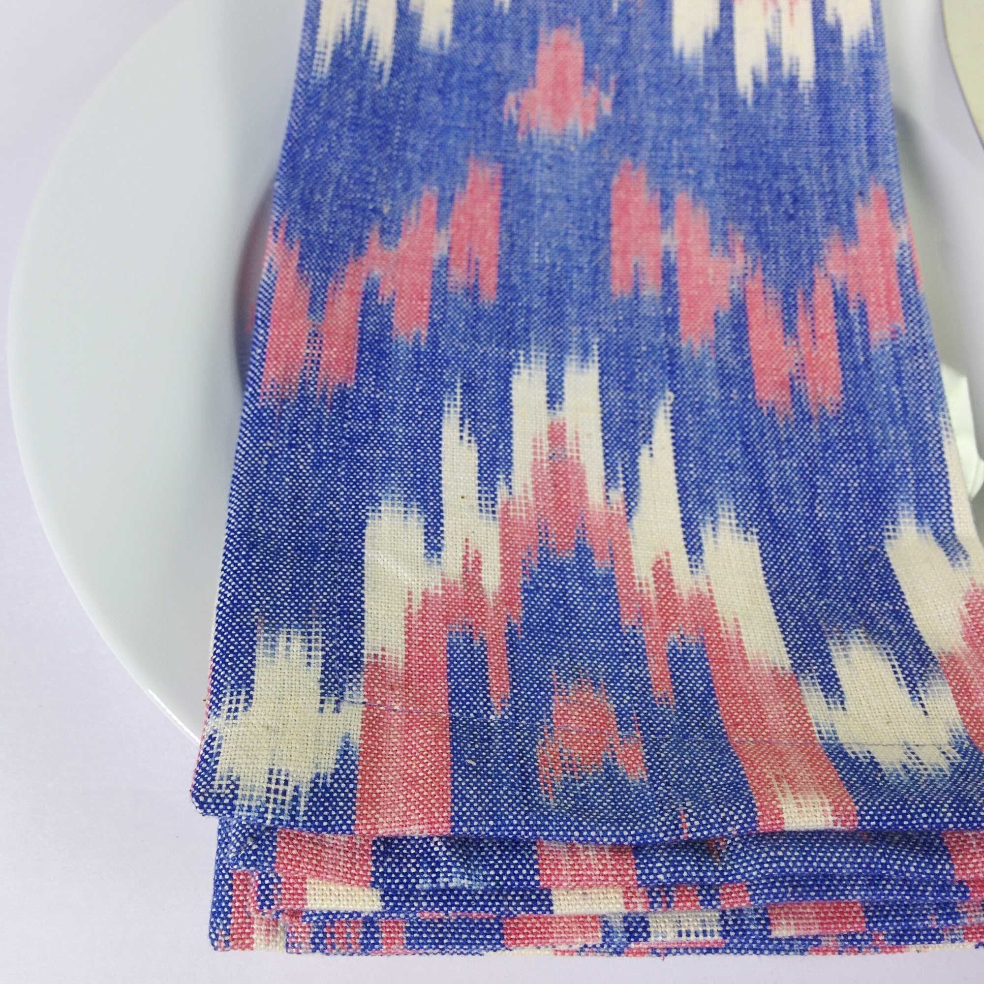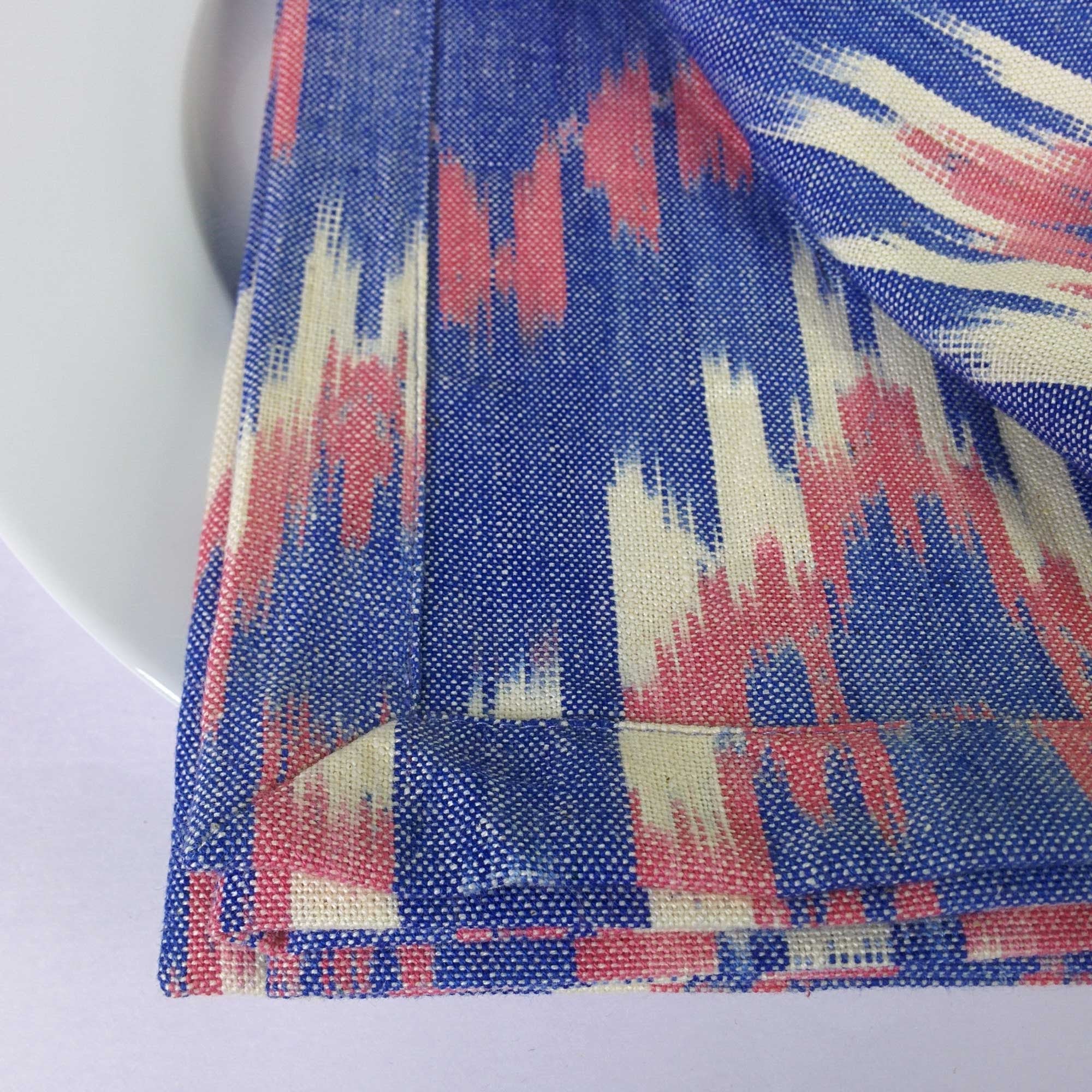 Set of two 100% pure cotton fabric napkins in Blue and Pink Ikat.