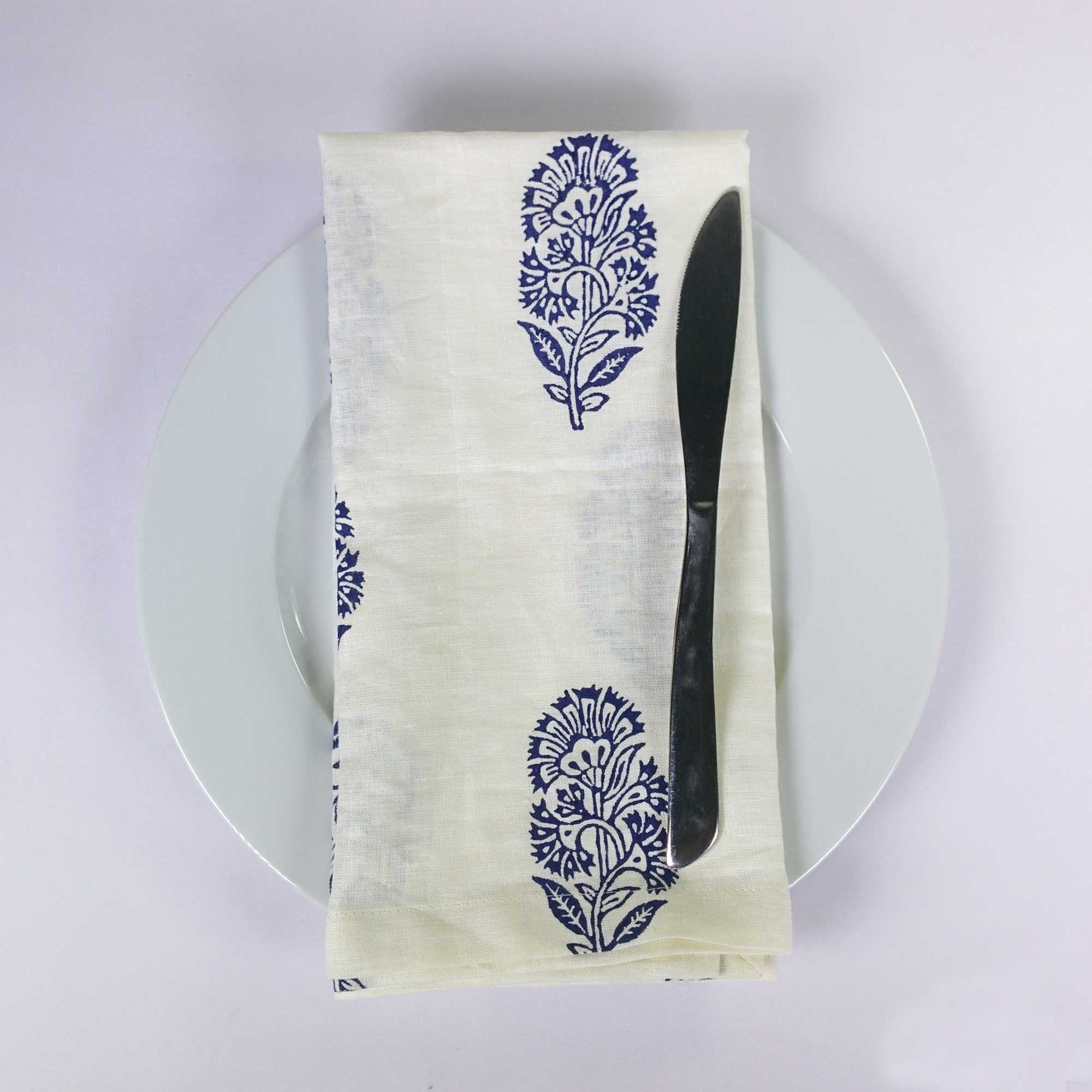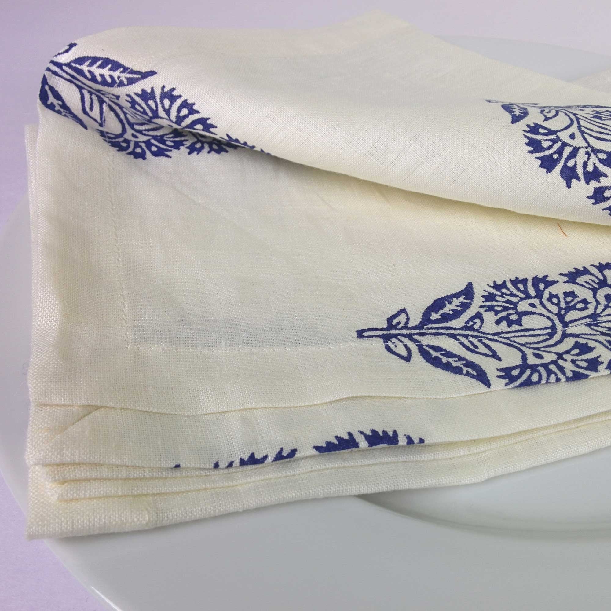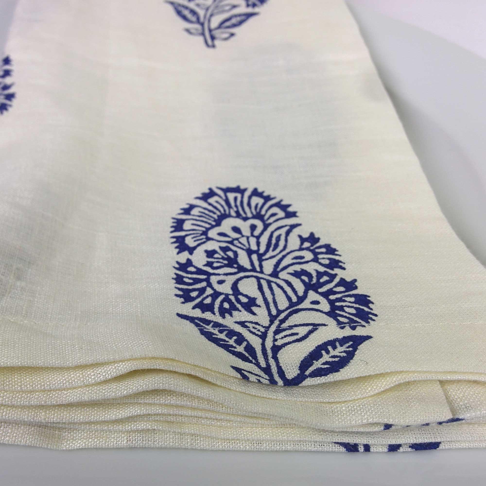 Set of two 100% pure linen fabric napkins in Kashmir Flower print in Indigo.