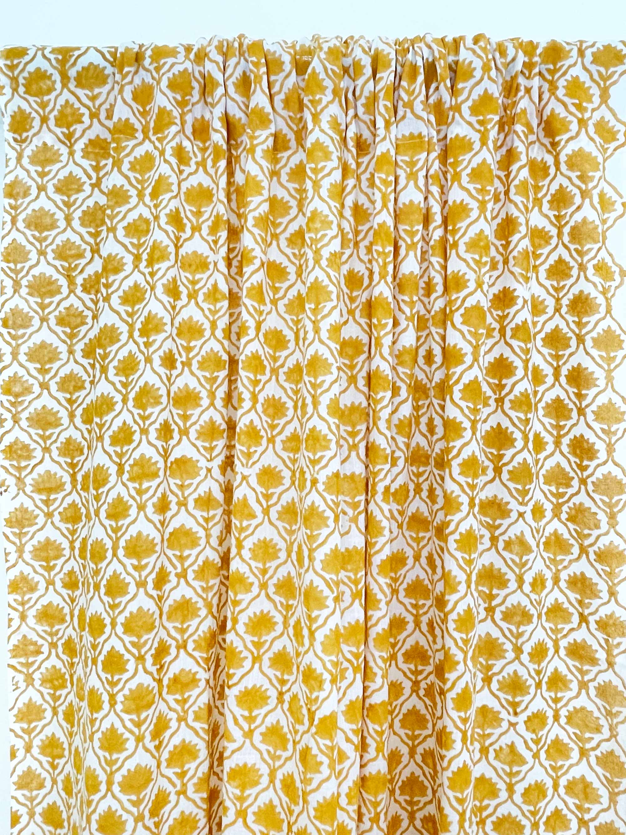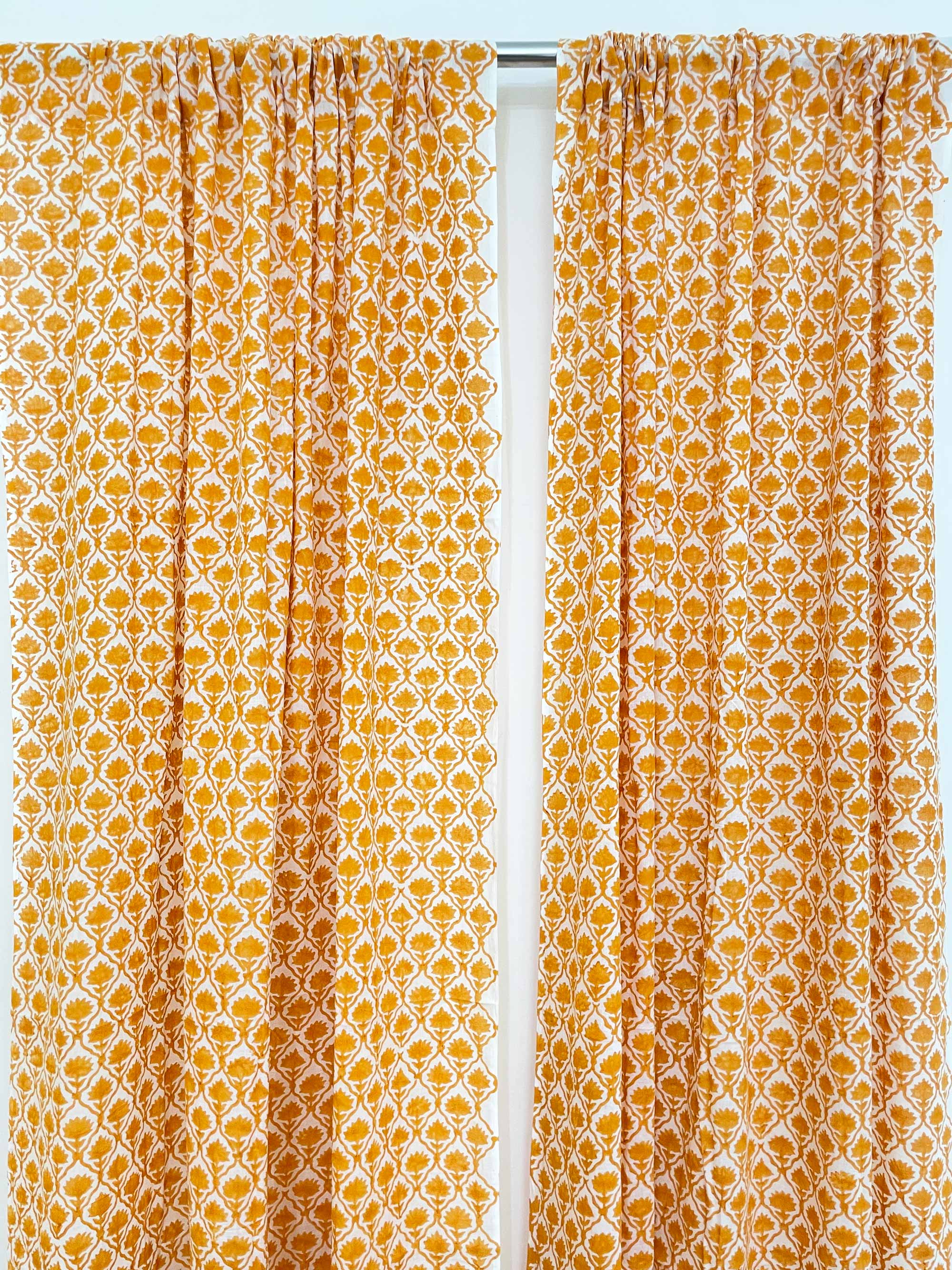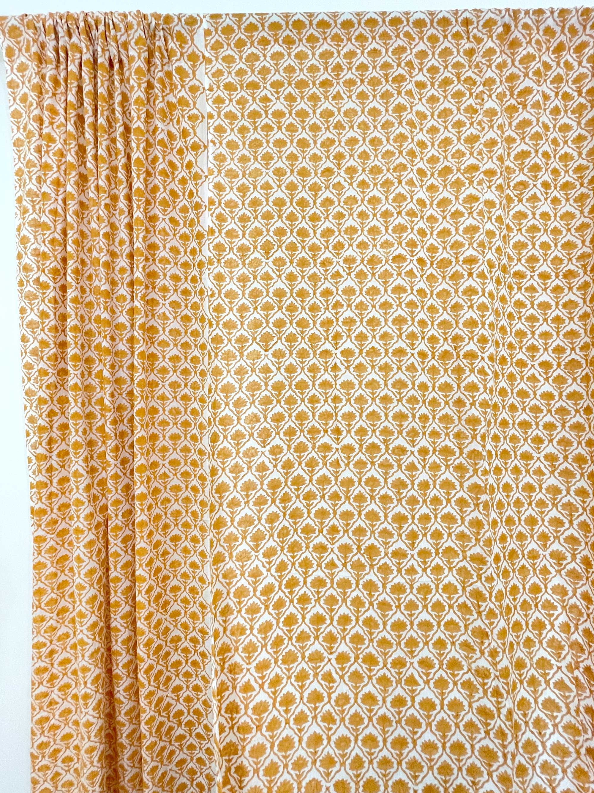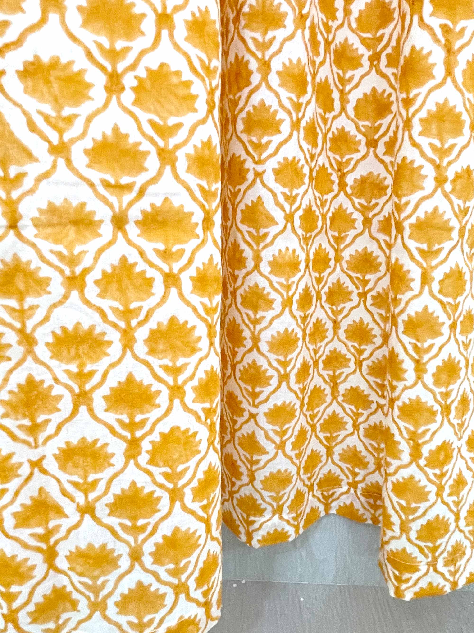 Mustard Kalamkari Hand Block Printed Curtain Panels