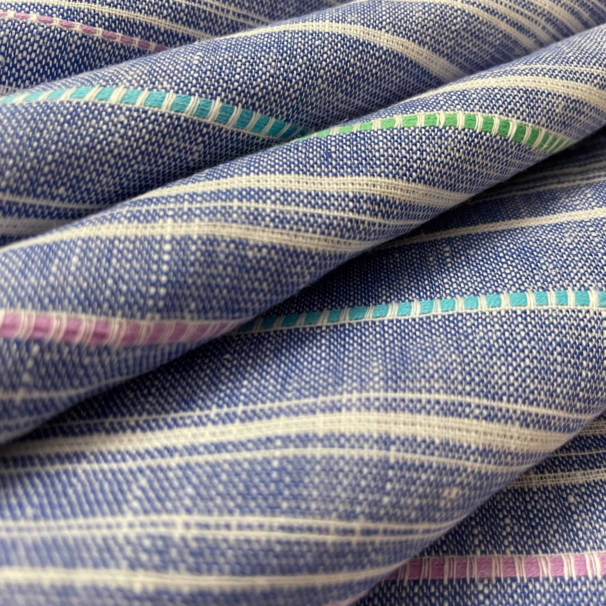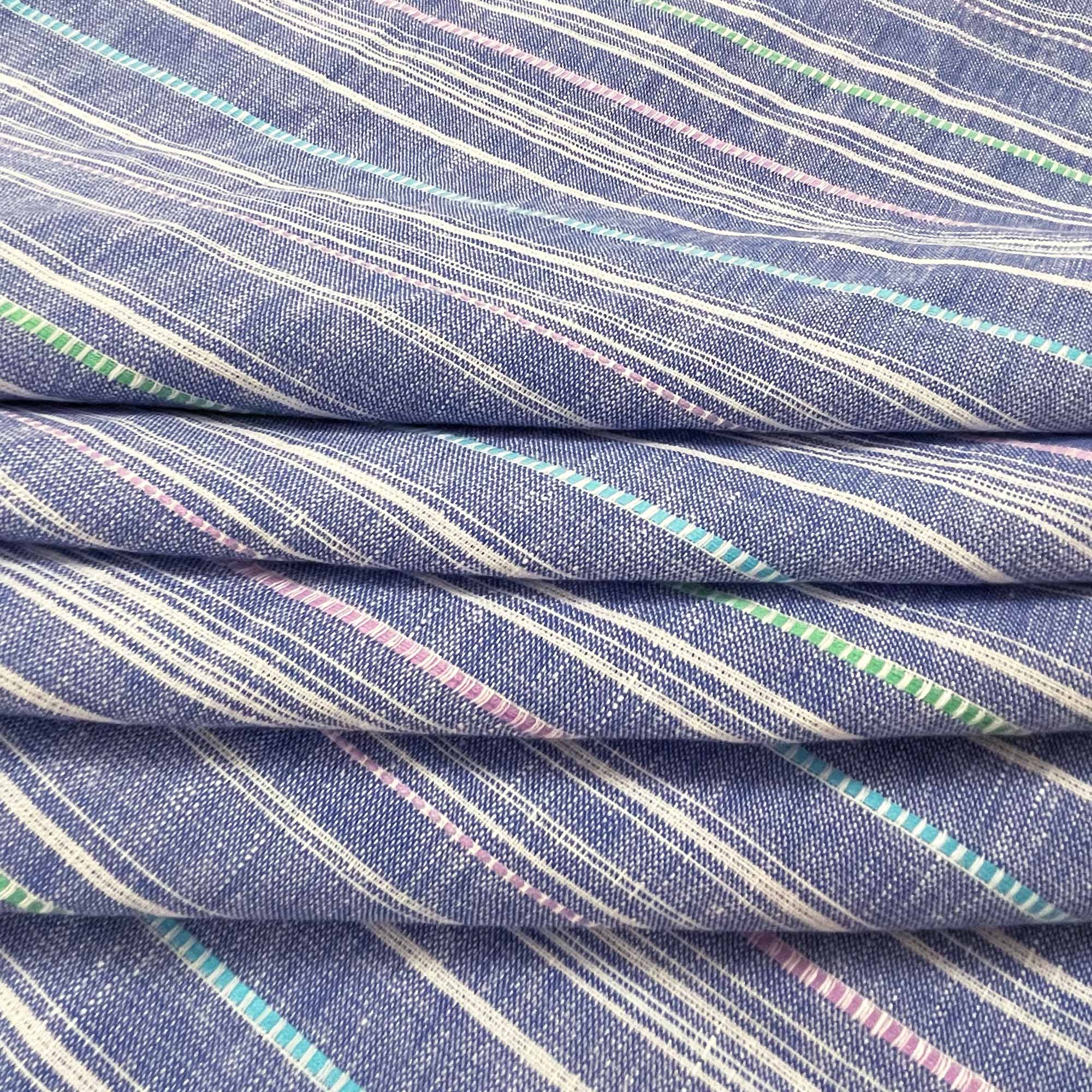 Woven stripes linen fabric in Medium Blue. Very soft and a little stretchy in nature, this is a handloom woven linen fabric.