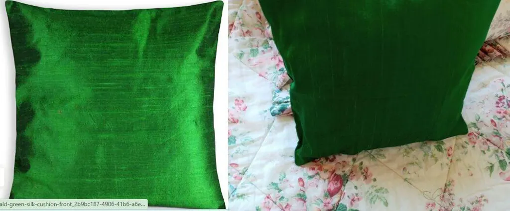 Emerald green raw silk pillow cover. Handmade in DesiCrafts workshop, this pillow is special because you know this is made using 100% silk fabrics, organically produced. That means it is totally recyclable and brings no harm to your kids and other family members.