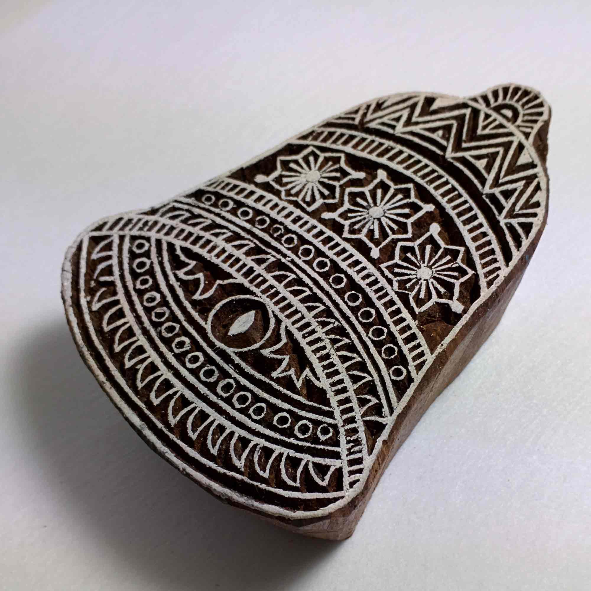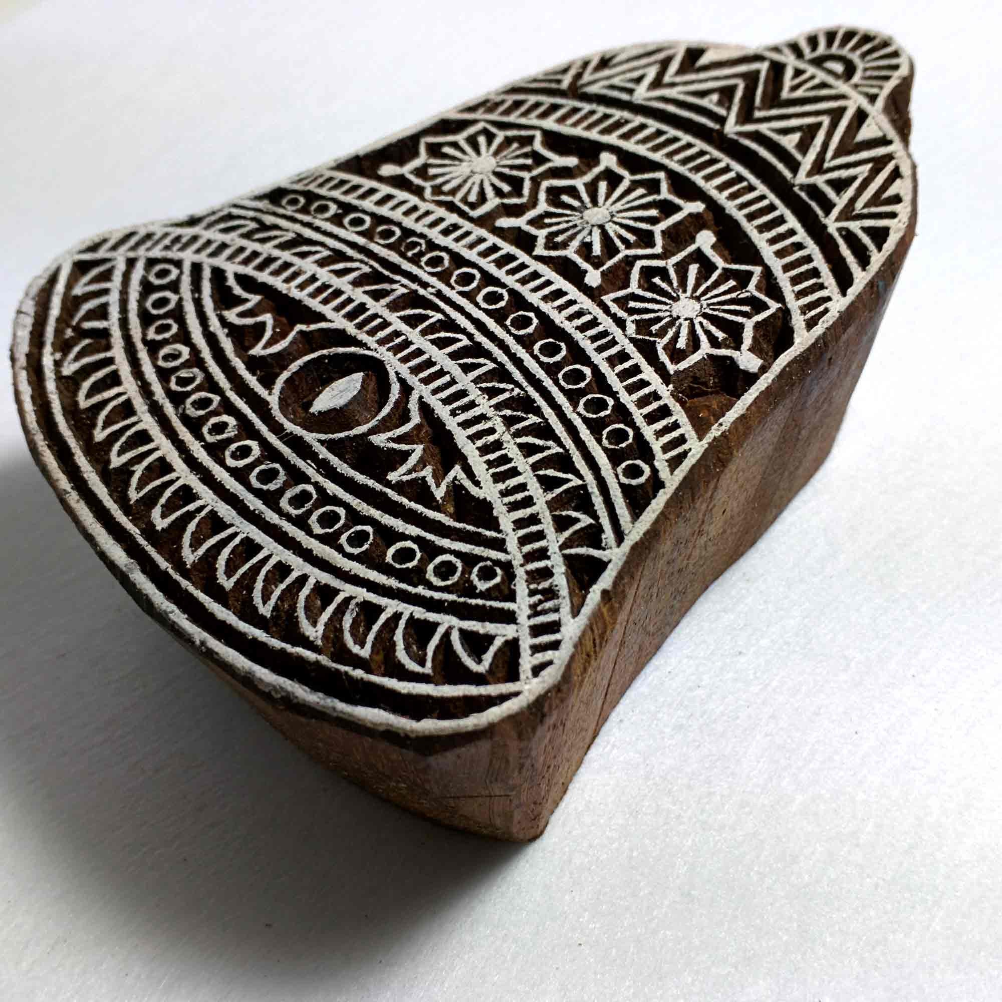 This wood block is hand carved by an award winning master carver in India. The block is made using rosewood- the most expensive and the most durable wood used for stamp making.