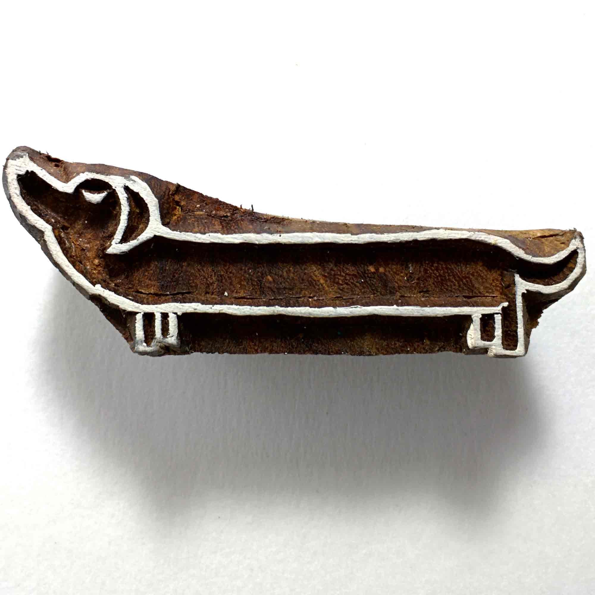 Wood block printing stamp - Dachsund dog with intricate carving.