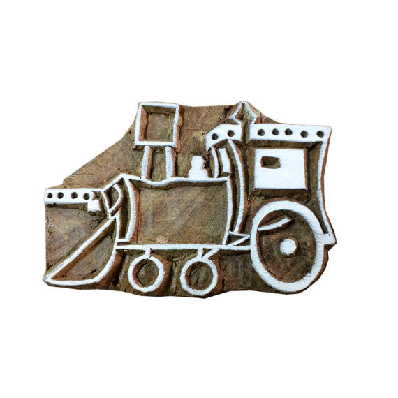Wood block printing stamp - farming Vehicle with intricate carving.