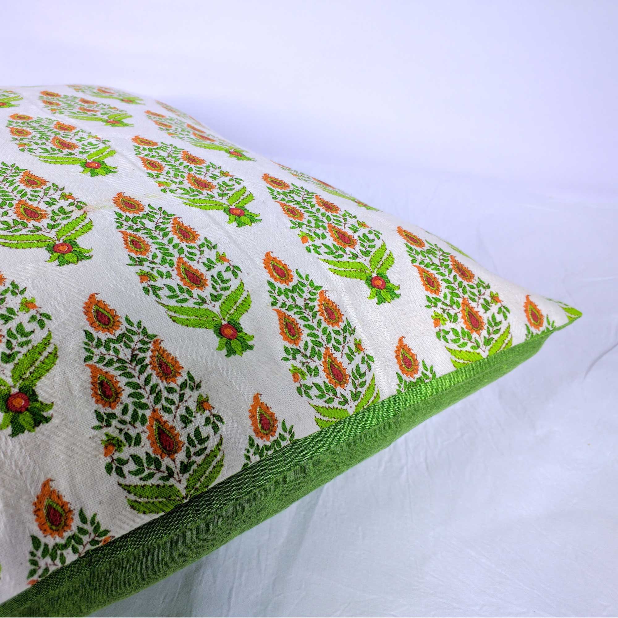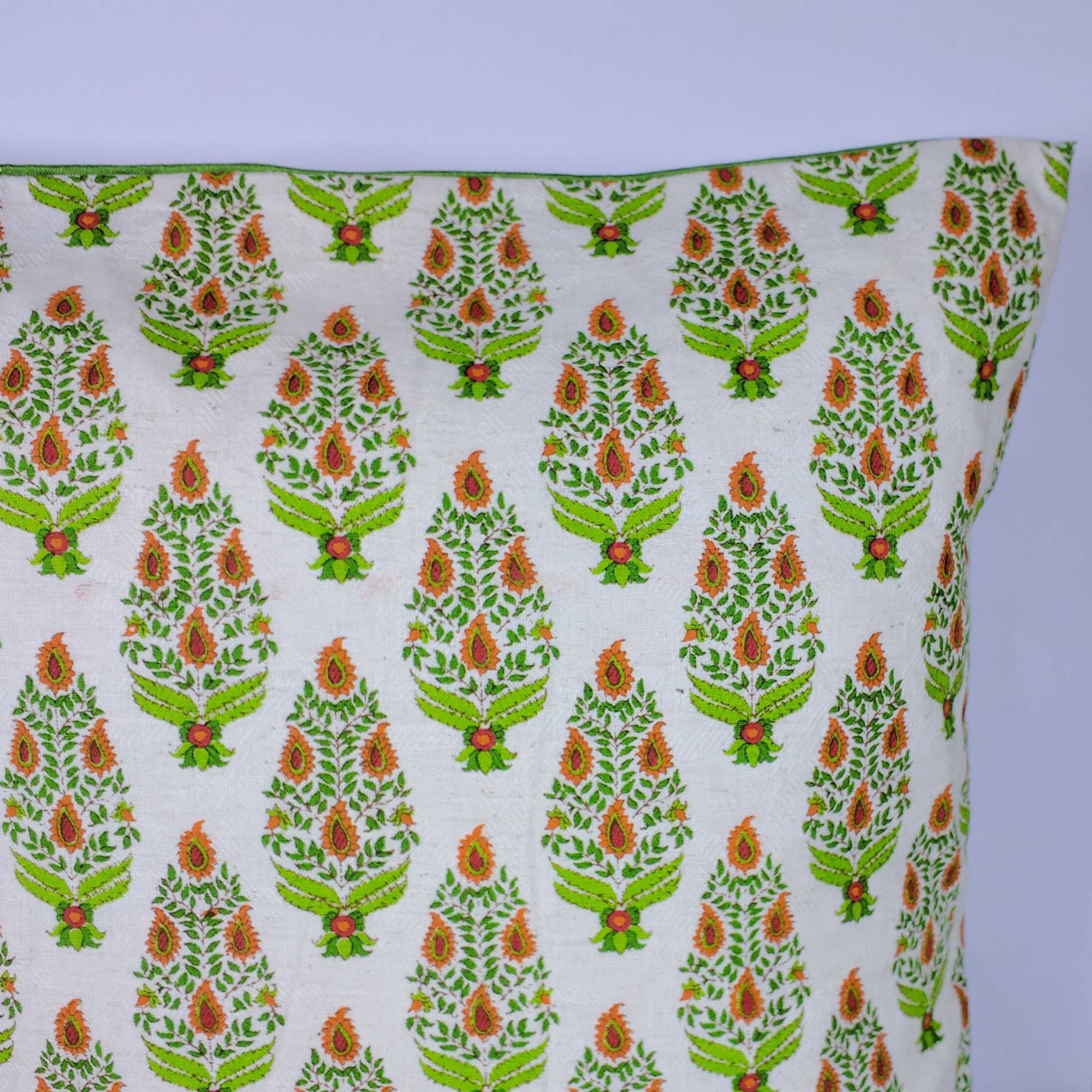 Green and cream tree pattern cotton cushion cover. 100% cotton pillow cover has a soft cotton lining that is well interlocked to avoid any fraying use-after-use.