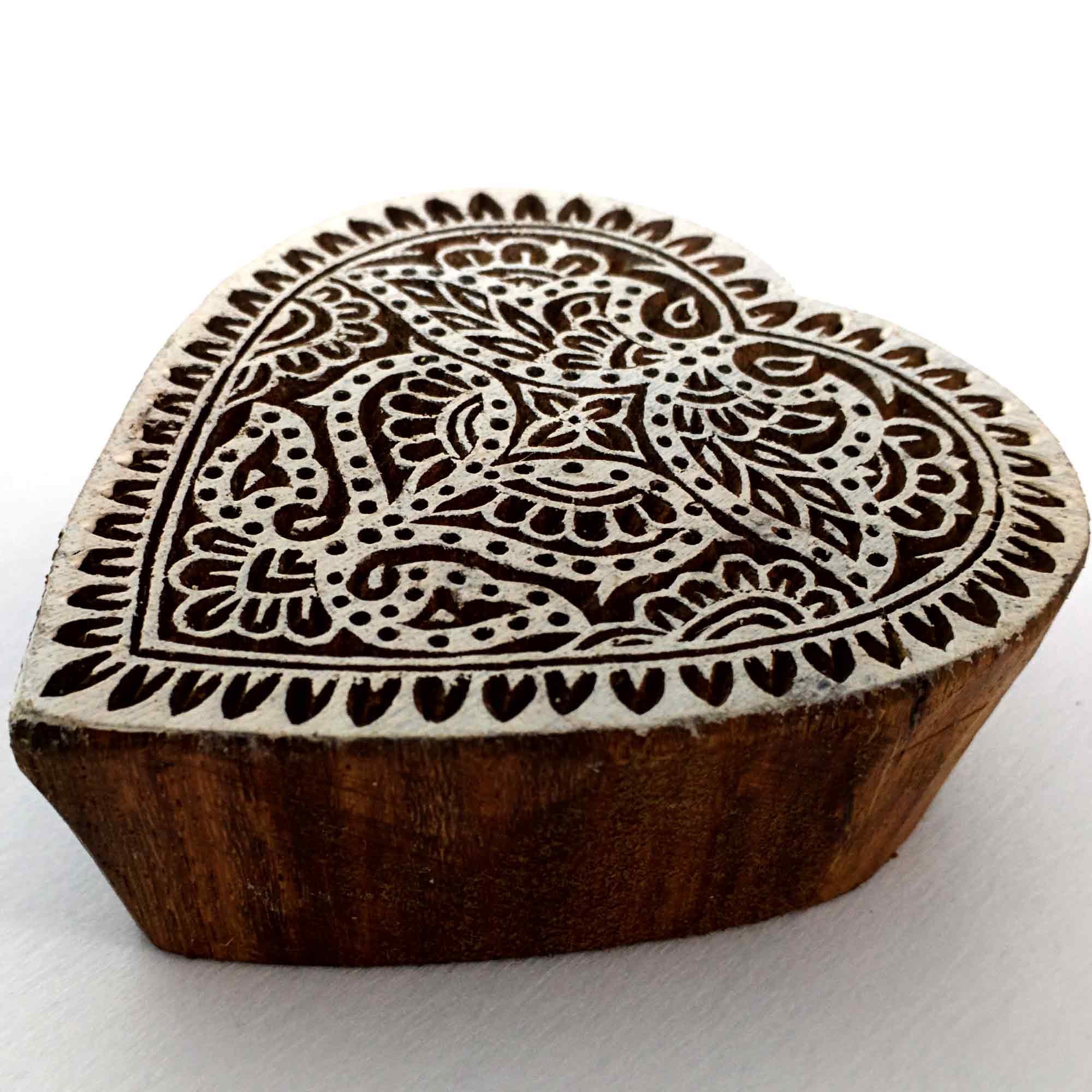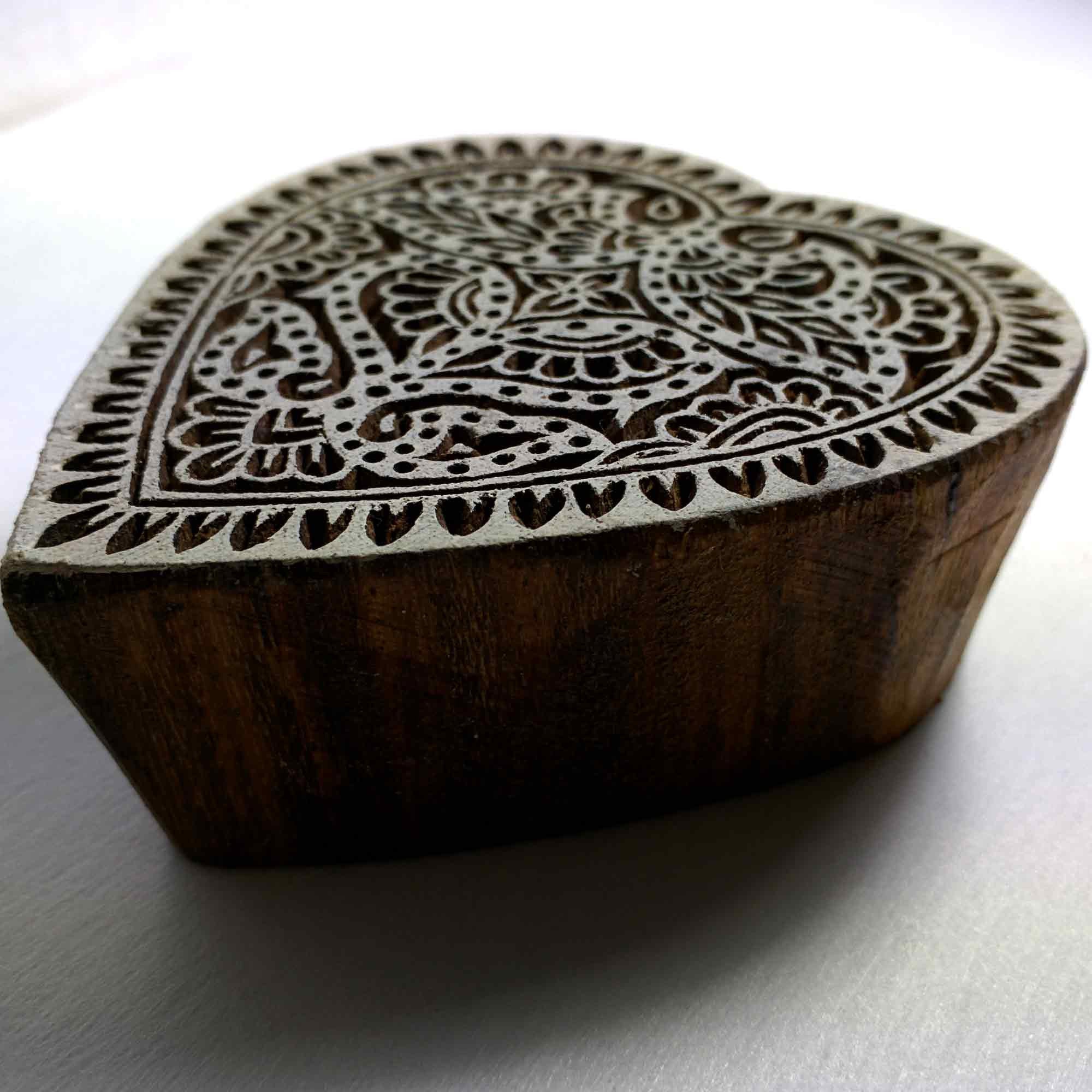 Wood block printing stamp - Heart with intricate carving.