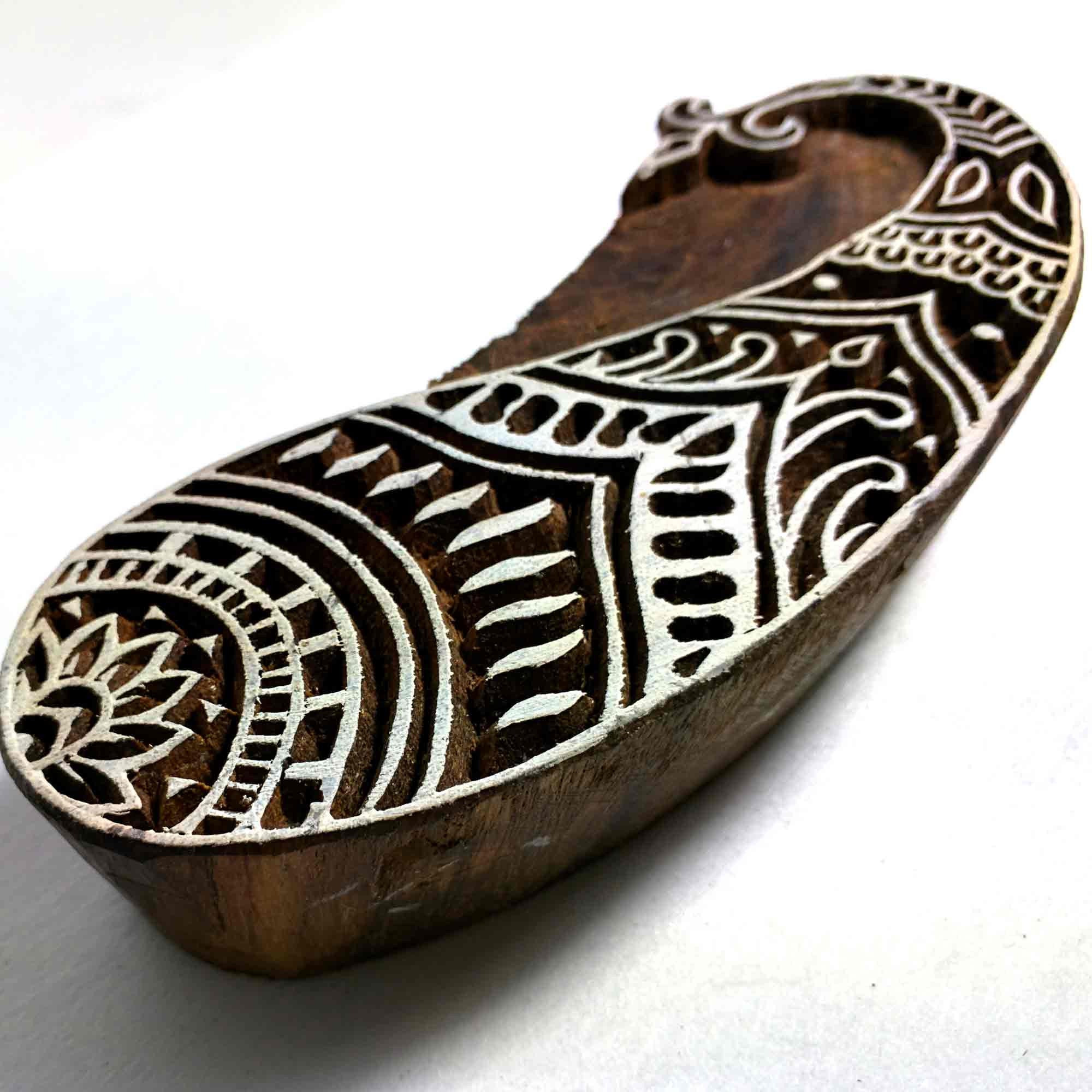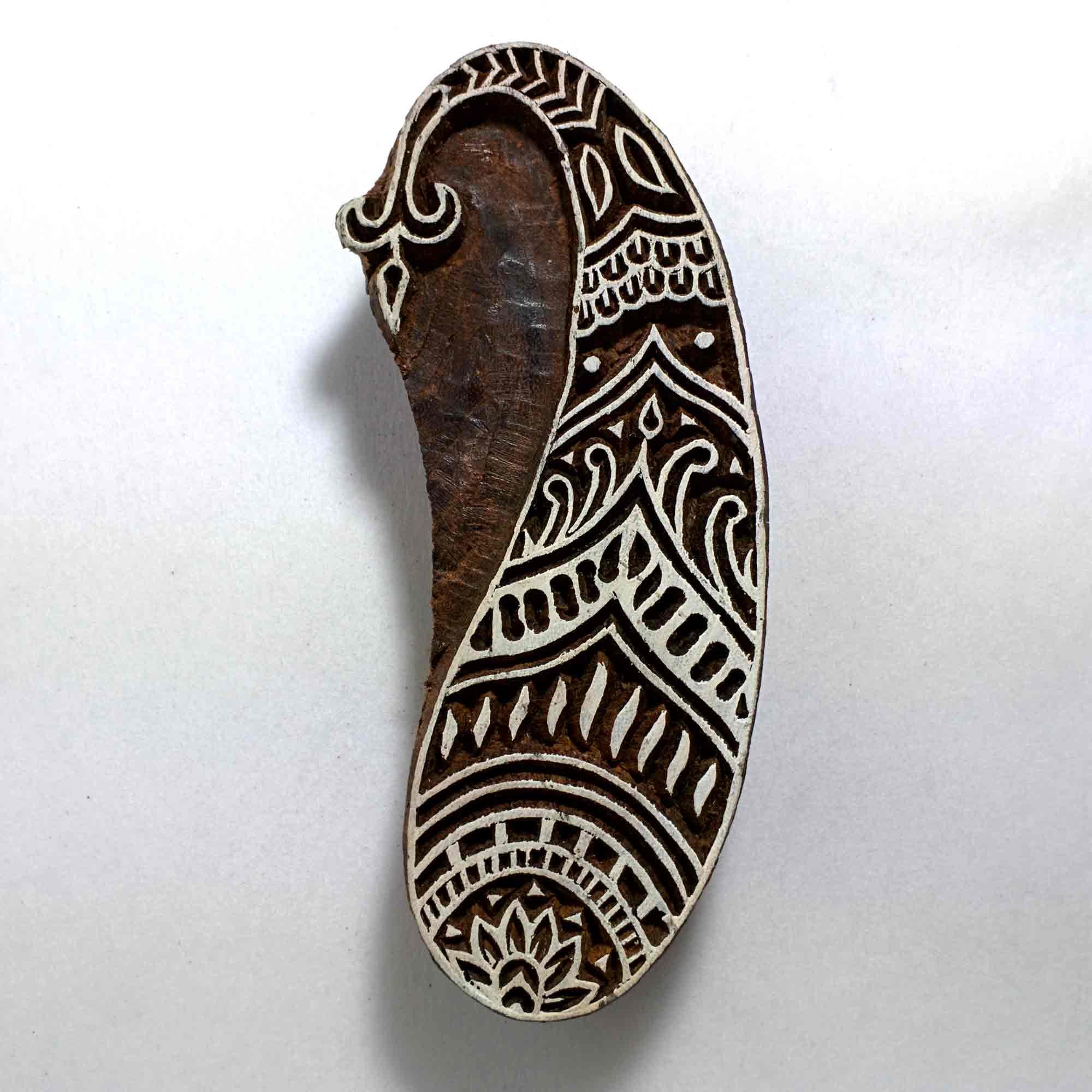 This wood block is hand carved by an award winning master carver in India. The block is made using rosewood- the most expensive and the most durable wood used for stamp making.