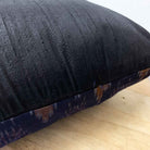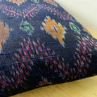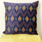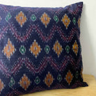 Handmade Ikat silk pillow cover in Navy and Mustard, handmade in DesiCrafts workshop in Chennai.