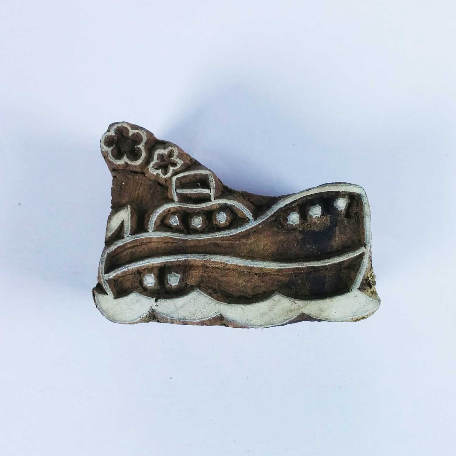 Kawaii Ship wood block printing stamp -  with intricate carving.