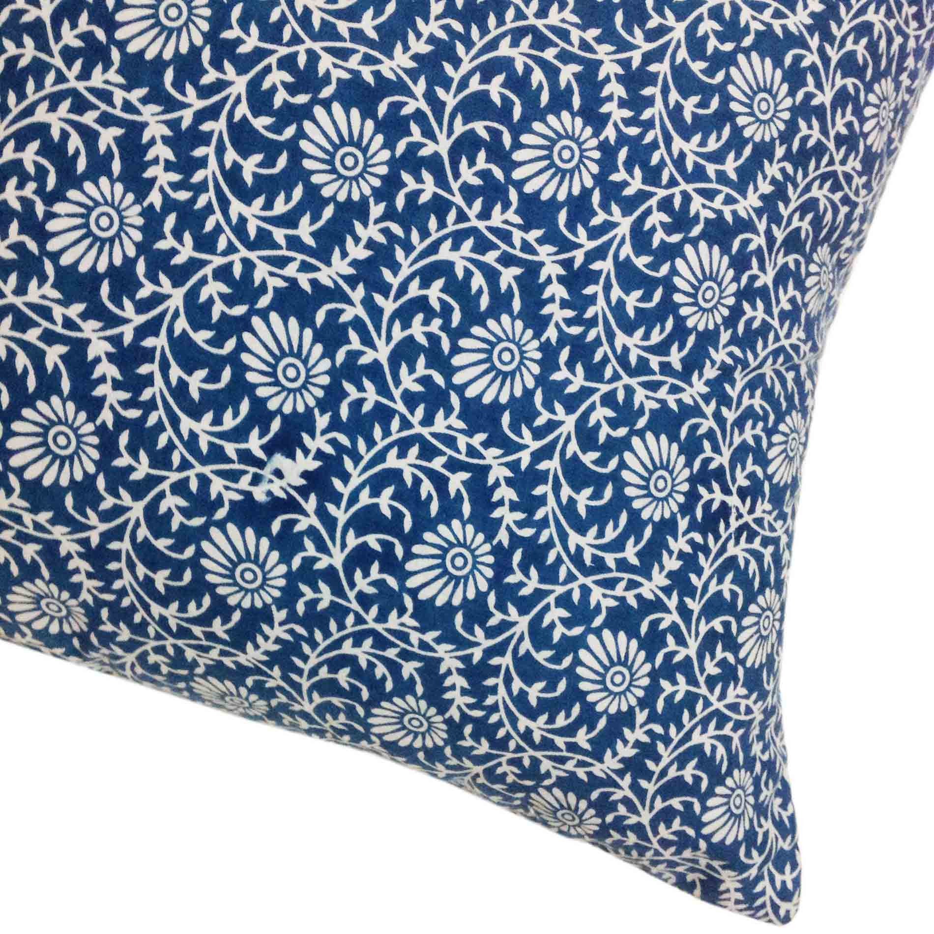 Teal and White printed cotton pillow cover. These are made using 100% cotton fabric. Each cushion cover has good quality lining and is interlocked to avoid any fraying wash after wash.
