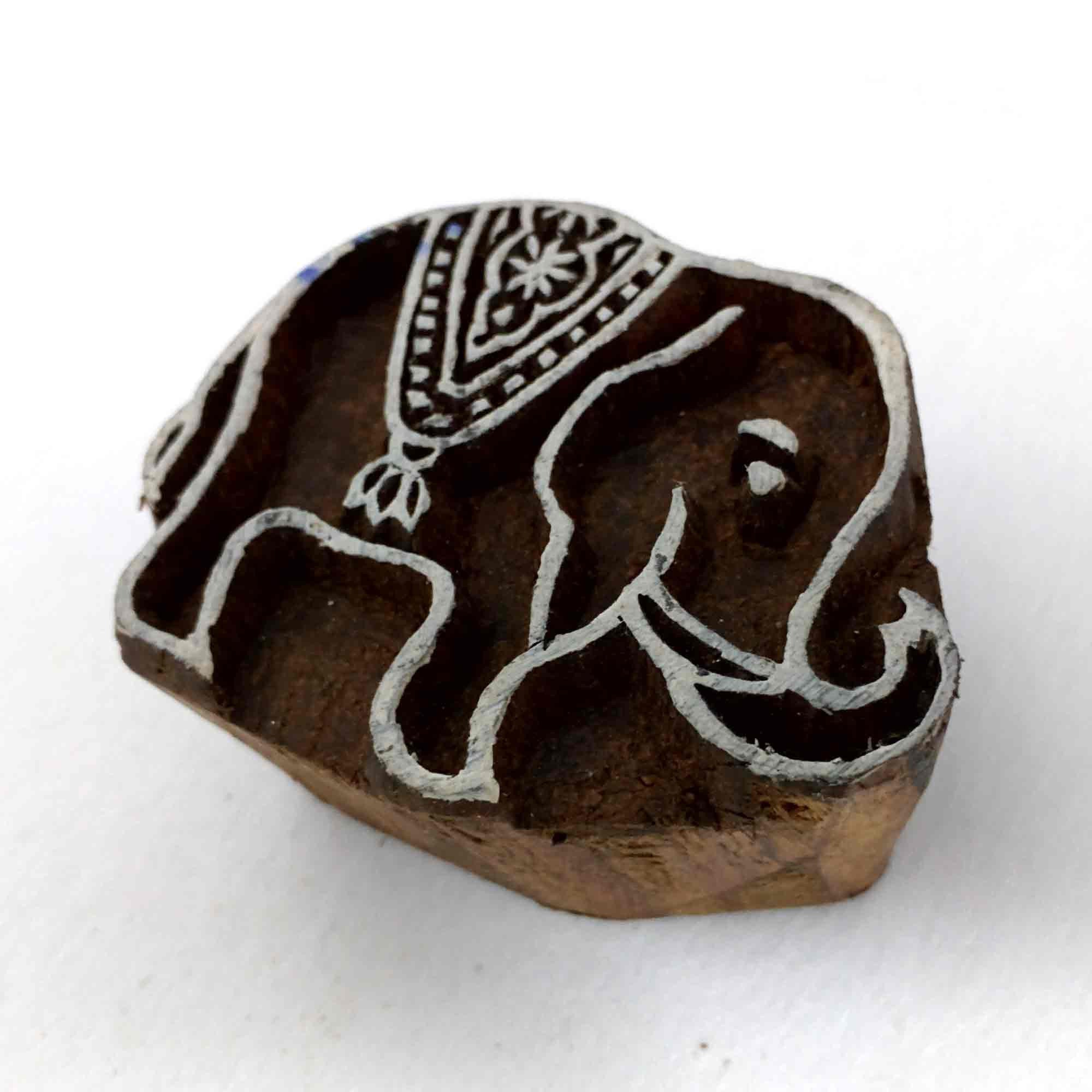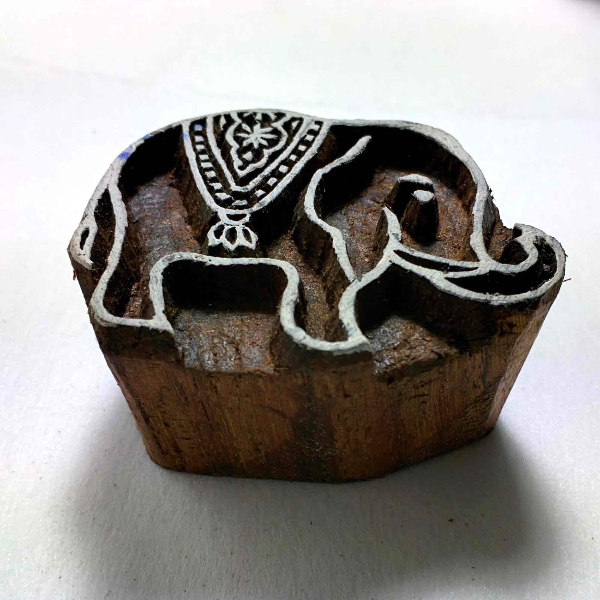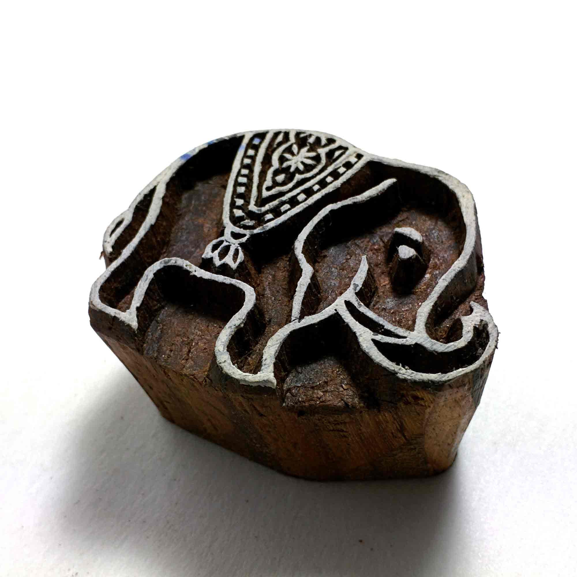 Wood block printing stamp - Elephant pattern with intricate carving.