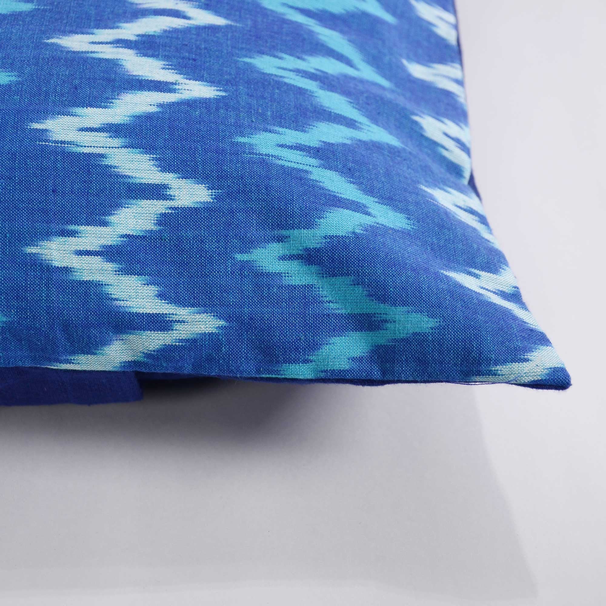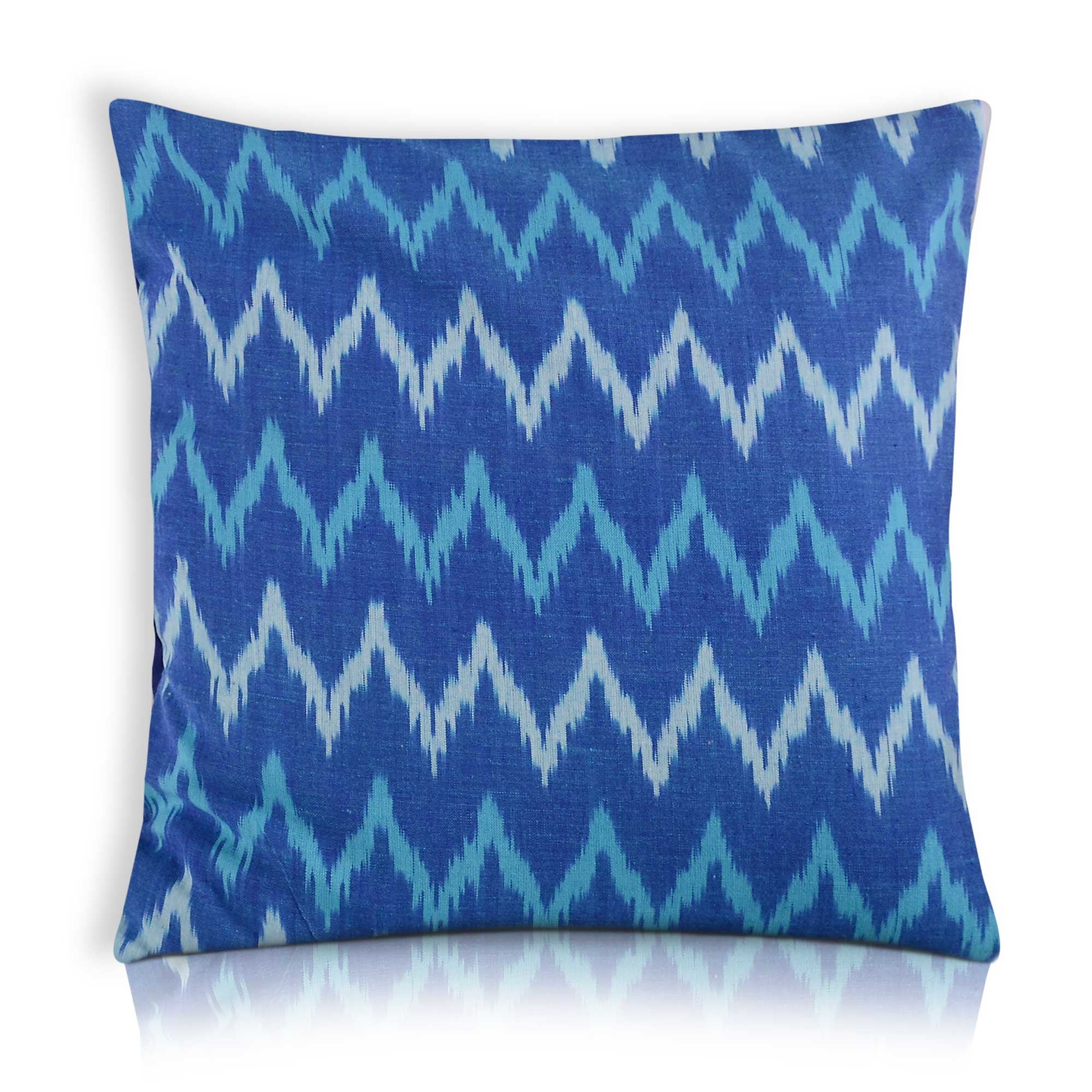 Turquoise Ikat cotton pillow cover. 100% cotton, fabric has been used to make this pillow cover. The pillow cover has a soft cotton lining that is well interlocked to avoid any fraying use-after-use.