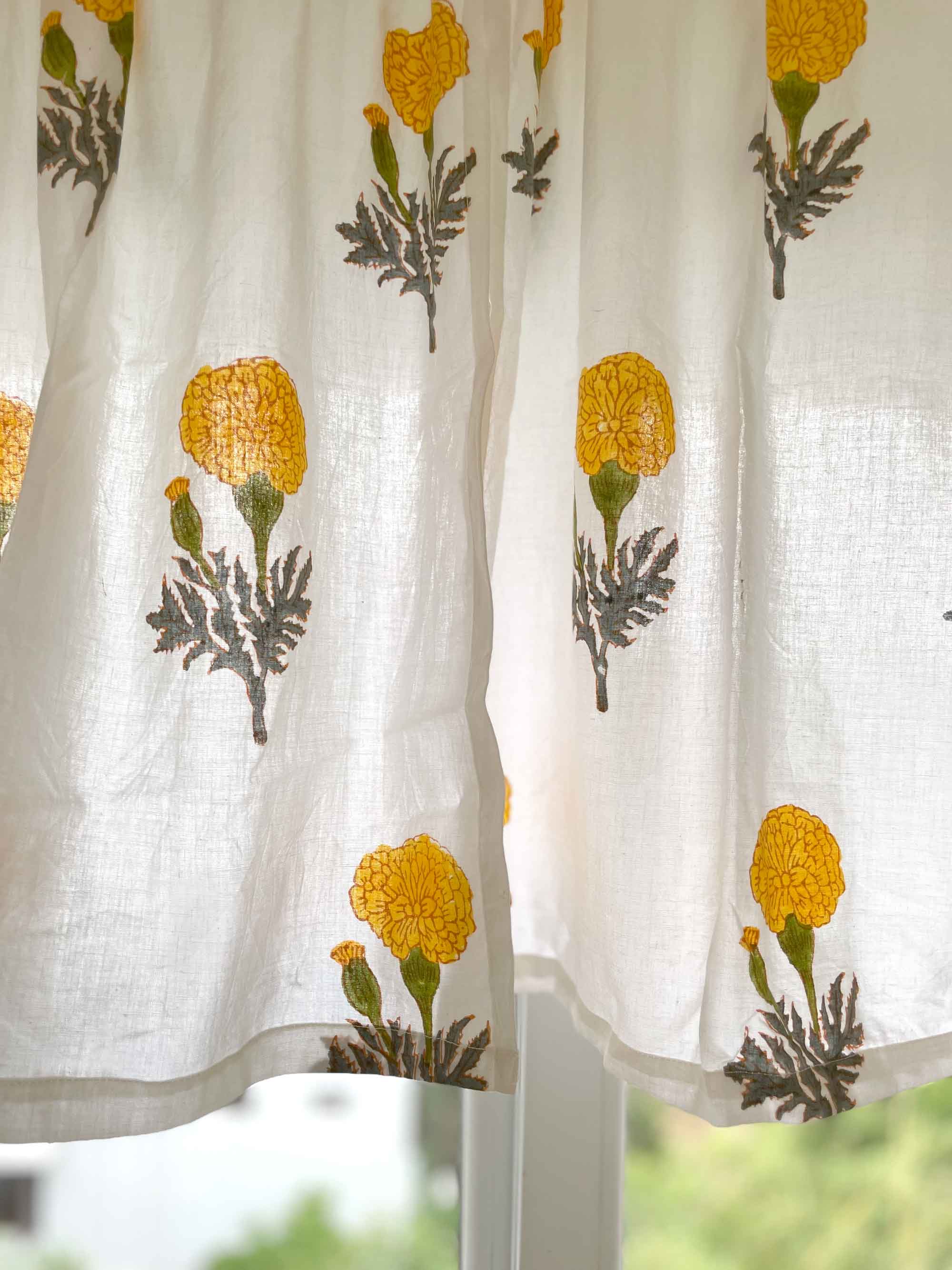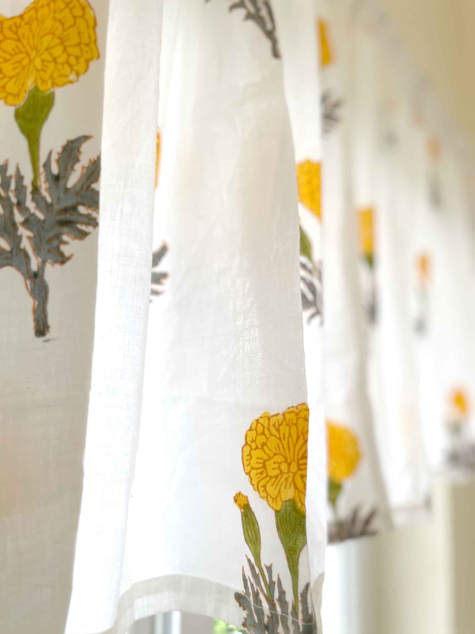 Yellow Marigold Floral Cafe Curtains, 2 Panels